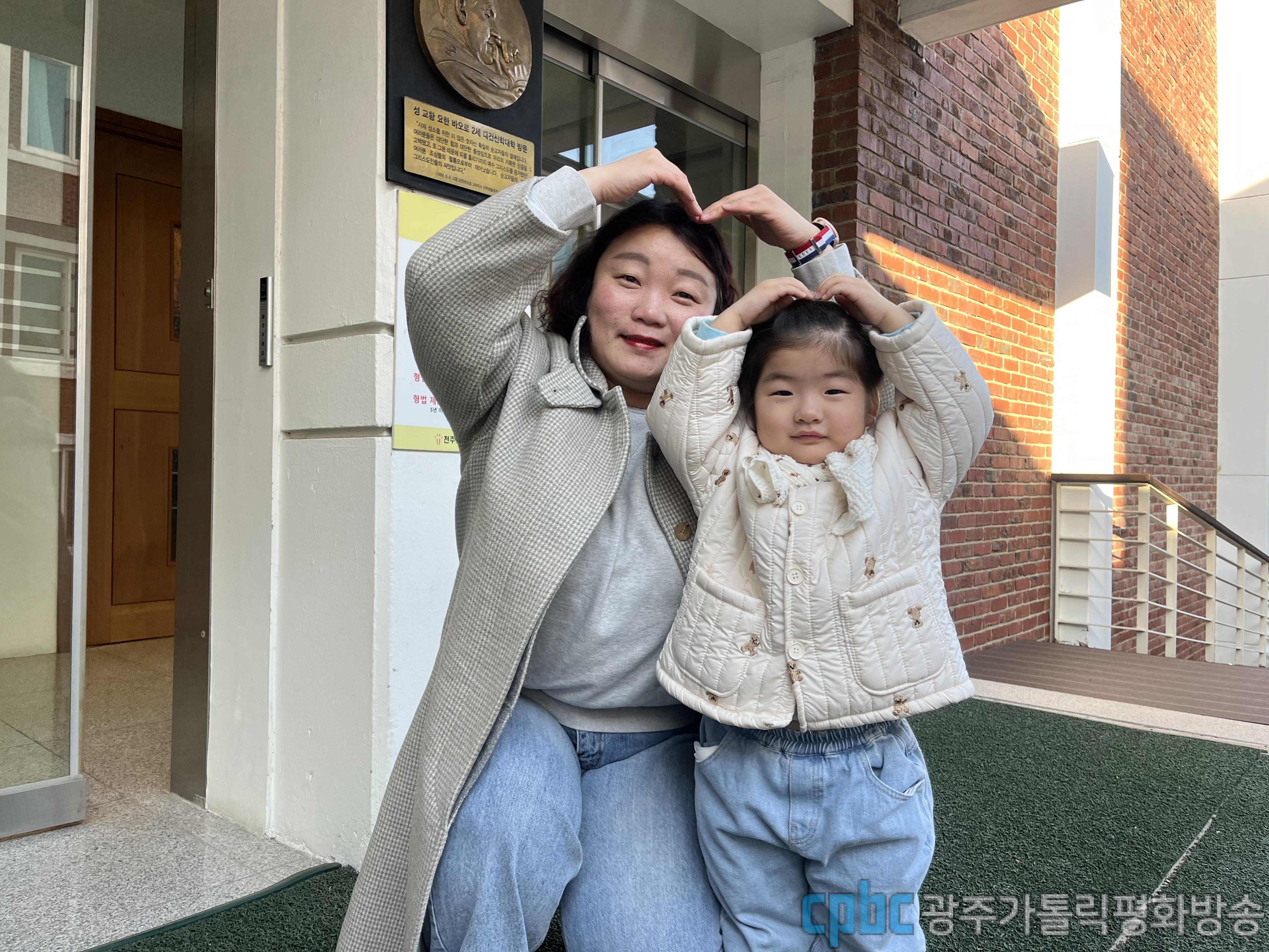 대성동본당 김지애(가타리나)자매는 딸 조유연(체칠리아)과 함께 해외 선교사제 파견미사에 참례해 김용빈 사도요한 신부의 선교사제로서의 사목 활동을 응원했다.