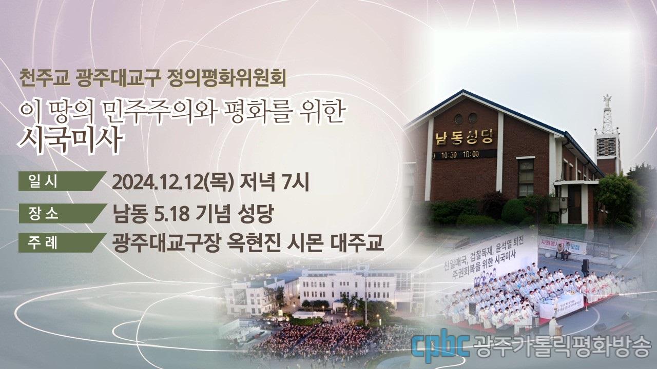 (광주가톨릭평화방송) 김선균 기자 = 천주교광주대교구는 12.3 비상계엄 사태와 관련해 시국미사를 봉헌합니다.