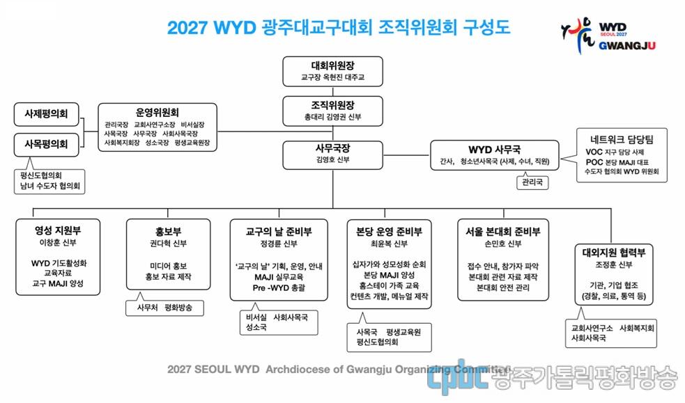 천주교광주대교구는 오는 2027년 세계청년대회(WYD)기간에 열리는 광주대교구대회를 성공적으로 치르기 위해 교구장인 옥현진 대주교를 조직위원회를 구성했다.