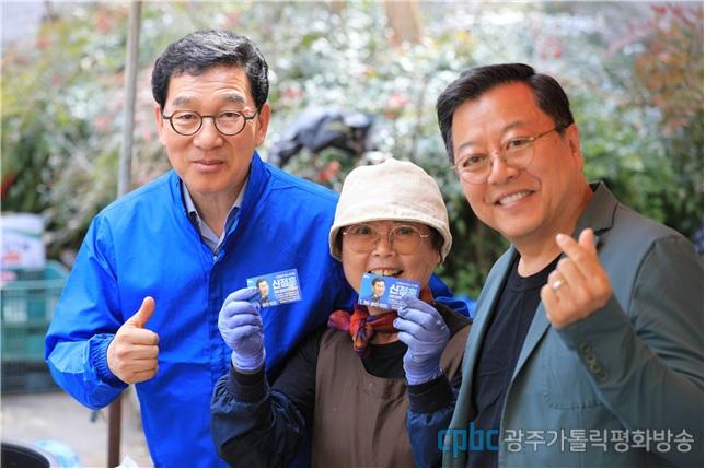 이 씨는 광주시청 사거리 출근길 인사를 시작으로 화순시장 민생 행보 등 신 후보의 주요 일정을 하루 종일 함께 소화하며 시민들에게 지지를 호소했습니다.