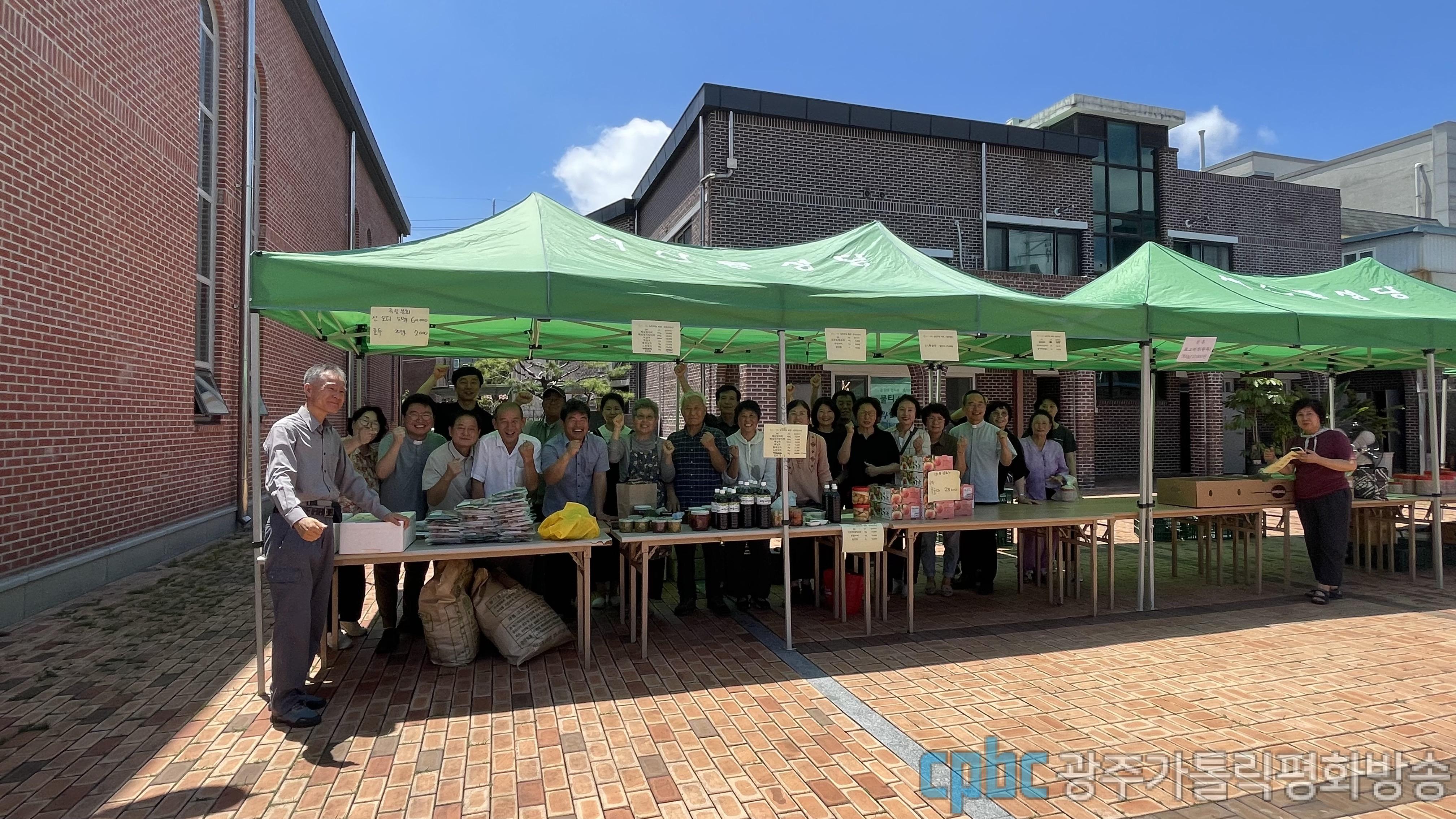 진행자: 미사가 끝난 후 저도 직접 서산동 본당 앞마당이 열린 직거래 장터에서 광주·전남 곳곳에서 모인 우리농 먹거리를 만나봤습니다.