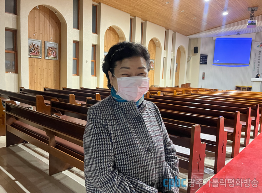 쌍촌동본당 김현정(마리나): 안녕하세요. 쌍촌동성당 김현정 마리나입니다. 오늘 사순특강이니까 수녀님 말씀 들으러 왔습니다. 예수님의 수난을 묵상하면서 저희도 그렇게 생활 안에서 살아보려고 생각하고 있습니다. 작은 희생이라고 할까요? 차를 안 탈 수 있으면 타지 않고 걷기 운동하고 또 성당에 갈 때는 특별히 더 많이 이렇게 성당에서 조배도 하고 십자가의 길도 하고 이렇게 사순시기를 보내고 있습니다. 올해 사순시기에는 특별히 기도를 좀 많이 하고 싶습니다. 교황님을 비롯해서 모든 사제 수도자들 또 평신도들도 이렇게 좀 많이 어렵고 힘들기때문에 그런 지향을 담아서 기도를 많이 하고 싶습니다.