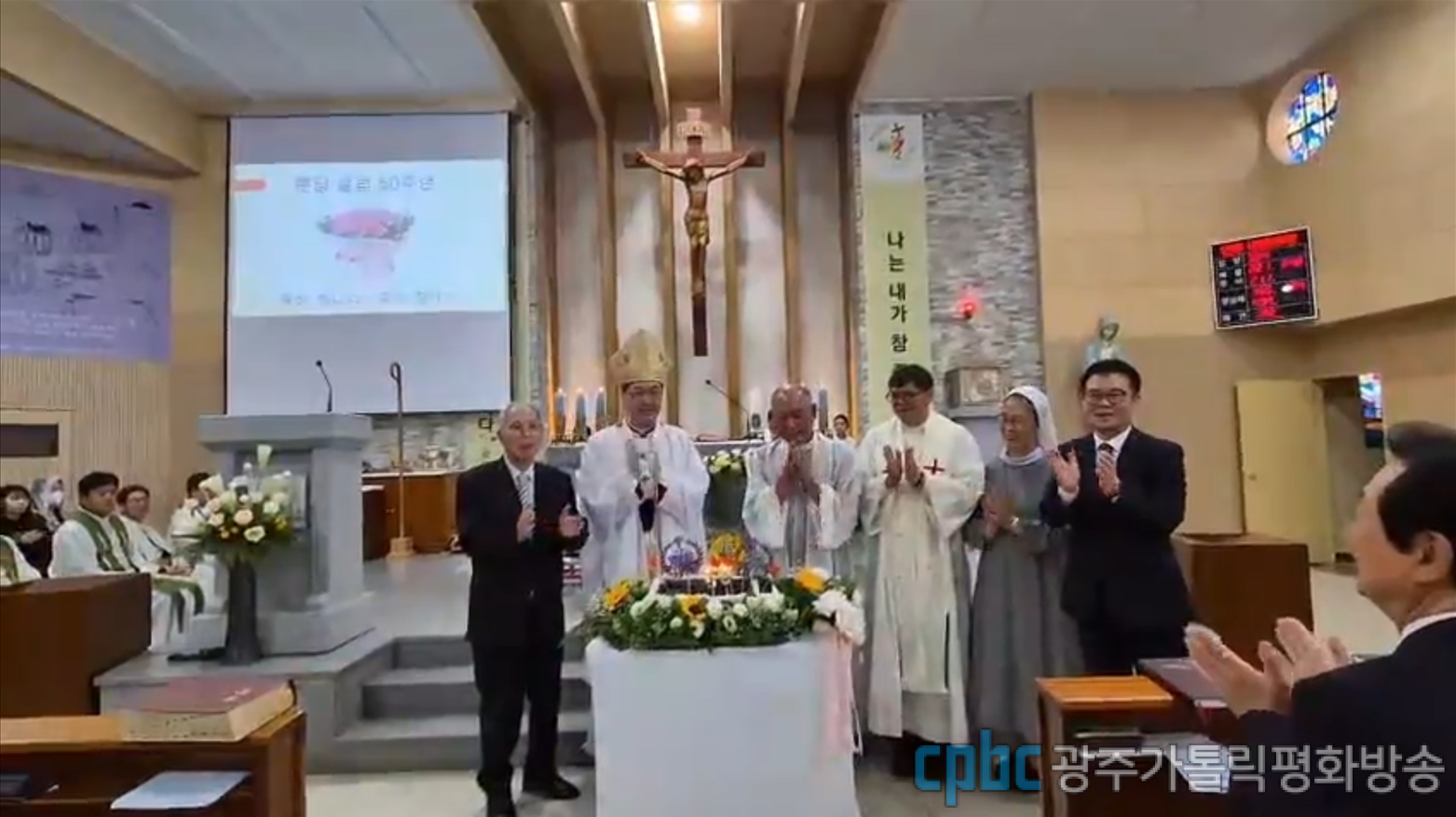 광양본당(주임 성종명 신부)은 지난 25일 오전 10시 30분 교구장인 옥현진 대주교의 주례로 설립 50주년 기념미사를 봉헌했습니다.