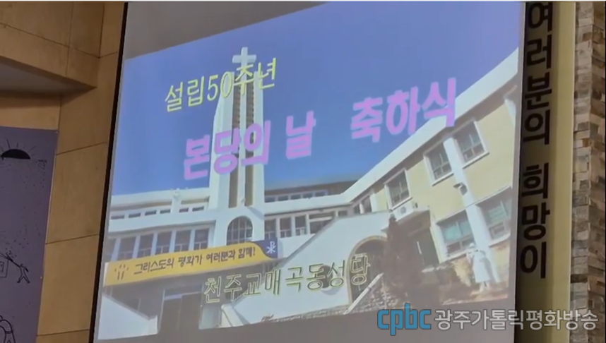 또, 정경륜 신부와 함께하는 음악 피정과 가족 미사, 신앙 특강 등 다양한 행사를 마련했으며 어제(26일)는 오전 9시 30분에는 광양성당 교우 9팀의 끼로 가득찬 '우리의 무대' 공연과 음식 나눔 행사를 열어 본당 설립 50주년의 기쁨을 나눴습니다.