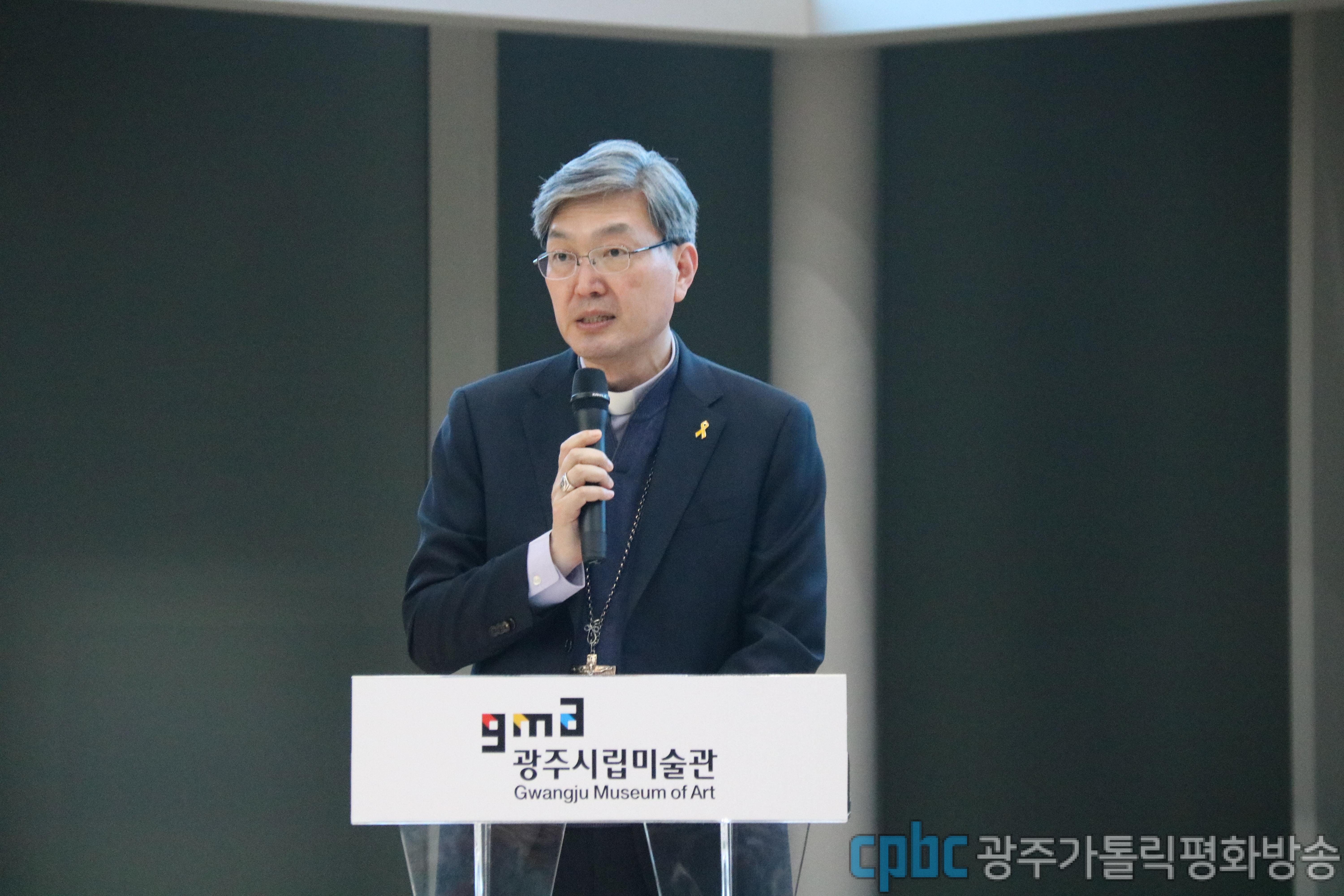 이날 개막식은 강기정 광주시장의 축하 영상으로 시작됐으며 광주대교구장인 옥현진 대주교를 비롯한 사제와 수도자, 윤 익 광주시립미술관장과 김상욱 국립아시아문화전당장, 작가의 가족과 제자 등 300여명이 참석했습니다.
